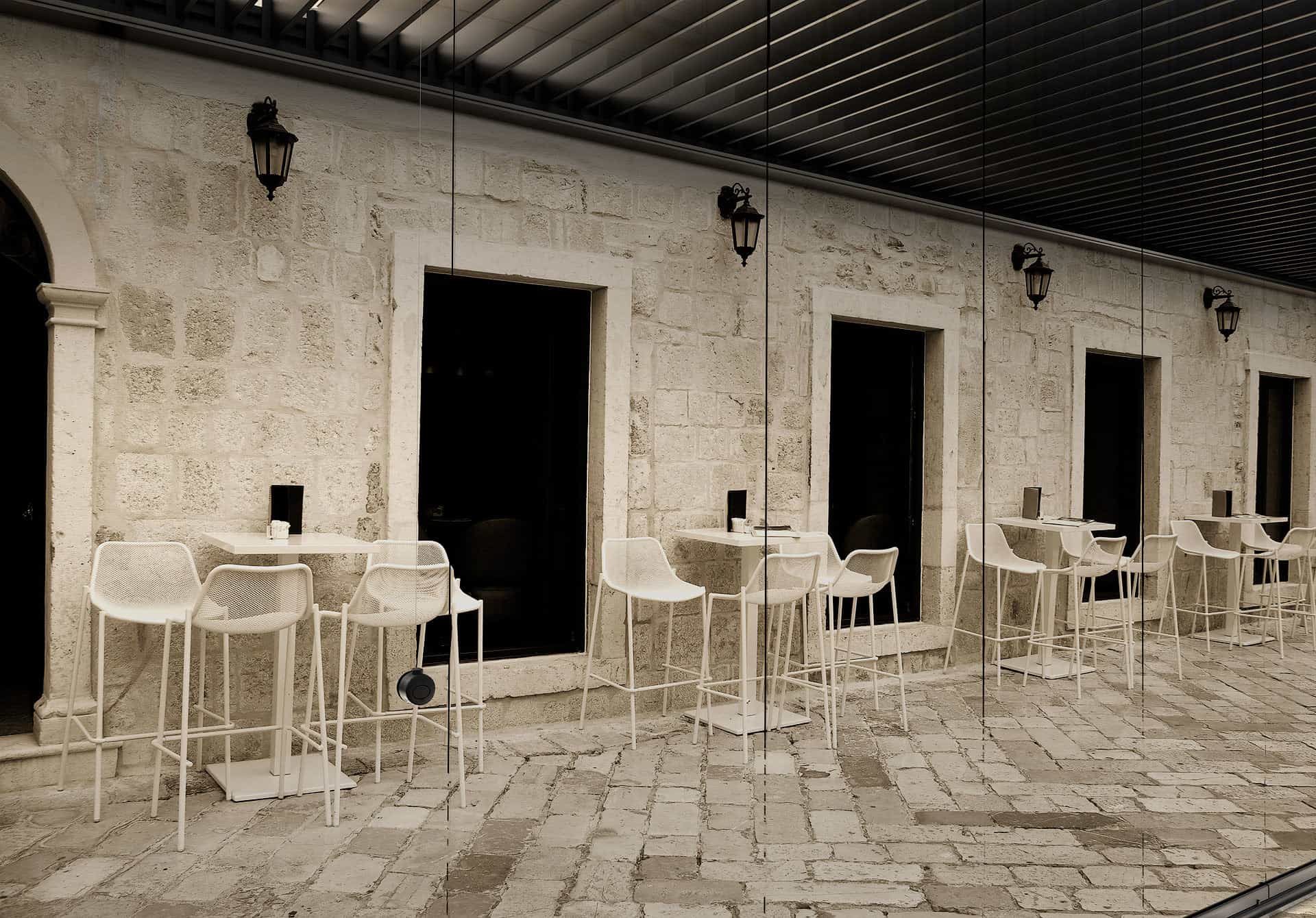 RA Bioclimatic Pergola provides clean lines thanks to its 160 x 160 millimetre profiles which are compatible with the brand’s glass closure systems. It is also characterised by the possibility of extra reinforcement for connection between posts and beams in the case of overloading by snow or wind, giving the same option of choosing the direction in which to open the slats and the incorporation of LED lights in the slats and structure.